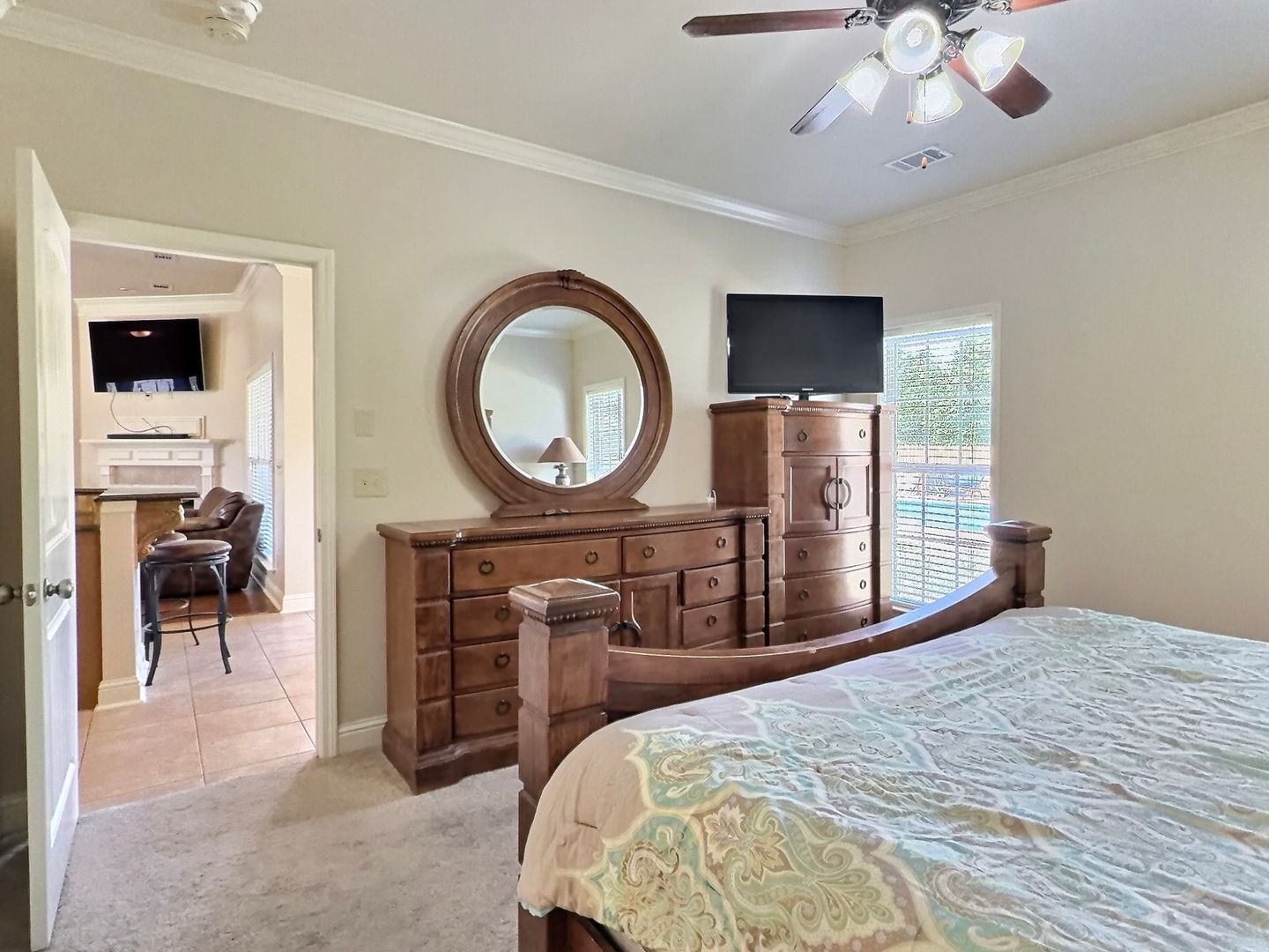 On the opposite side of the home, you’ll find three additional bedrooms—all generously sized—along with a well-appointed guest bathroom.